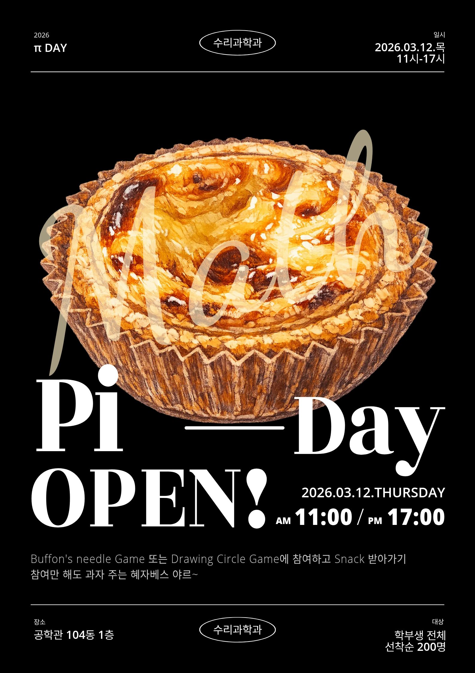 The 2026 Pi Day event will take place on March 12 from 11:00 a.m. to 5:00 p.m. in the first-floor lobby of Engineering Building 104. Although Pi Day is traditionally observed on March 14, this year's celebration has been scheduled two days earlier so that more members of the UNIST community can participate.