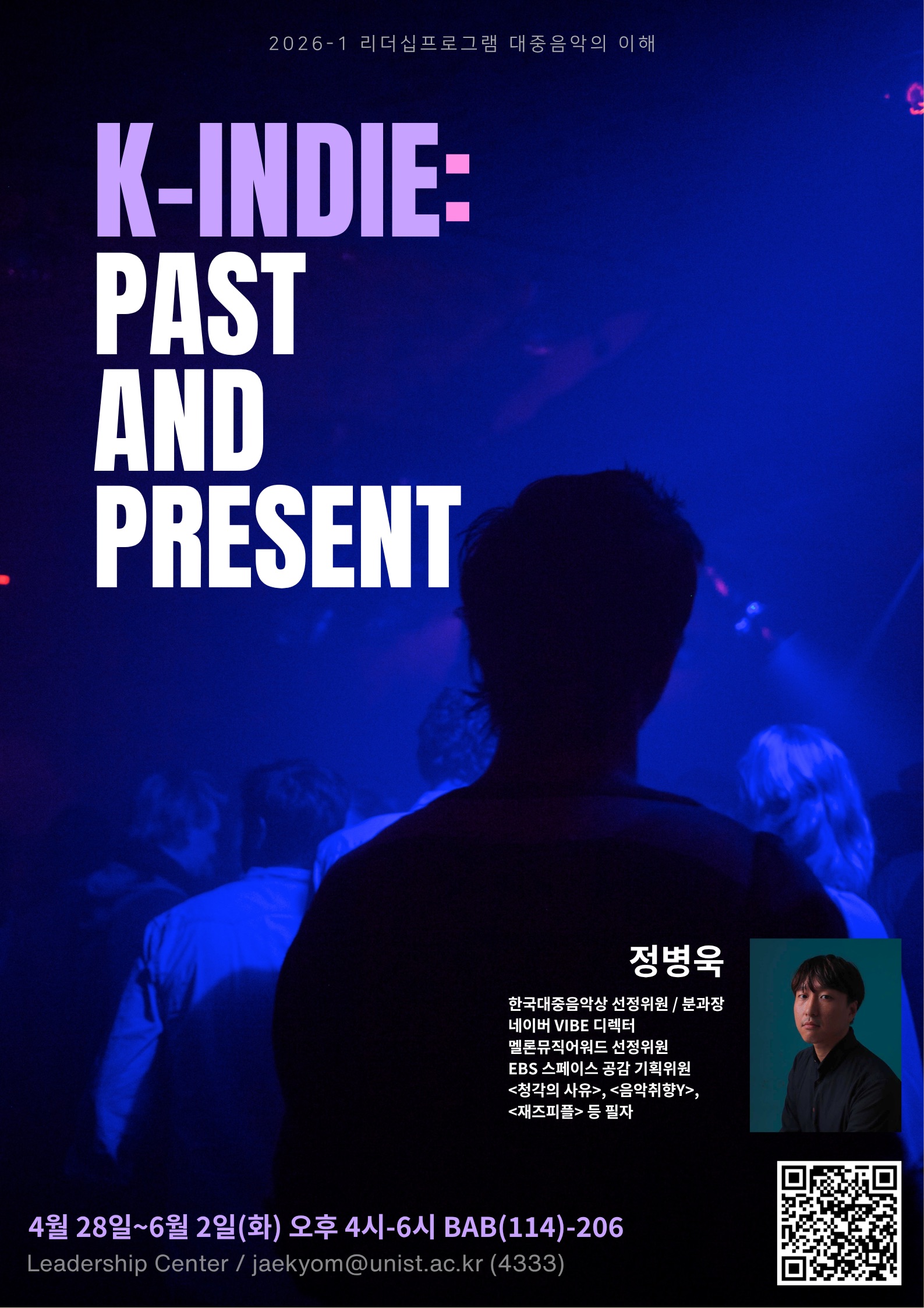 The UNIST Leadership Center will host a special lecture series, titled ' K-INDIE: Past and Present' from April 28 to June 2, 2026.